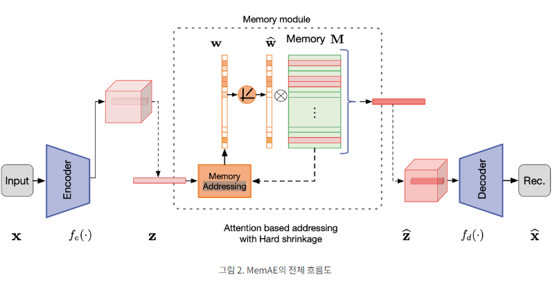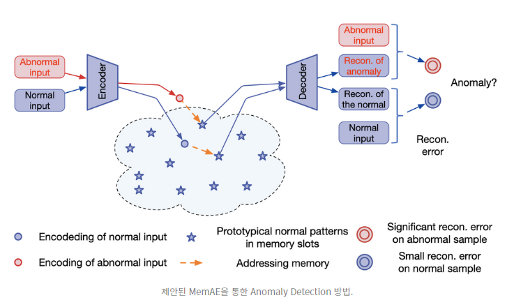 - 정상 데이터를 Encoding할 때 정상 데이터에 대한 memory을 얻은 후 이를 기반으로 해서 정상 데이터를 생성하는 방법