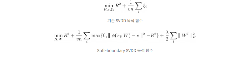 - 목적함수 - 최적화된 Hypersphere의 반지름을 최소화하면서 많은 정상 데이터를 둘러싸는 방향