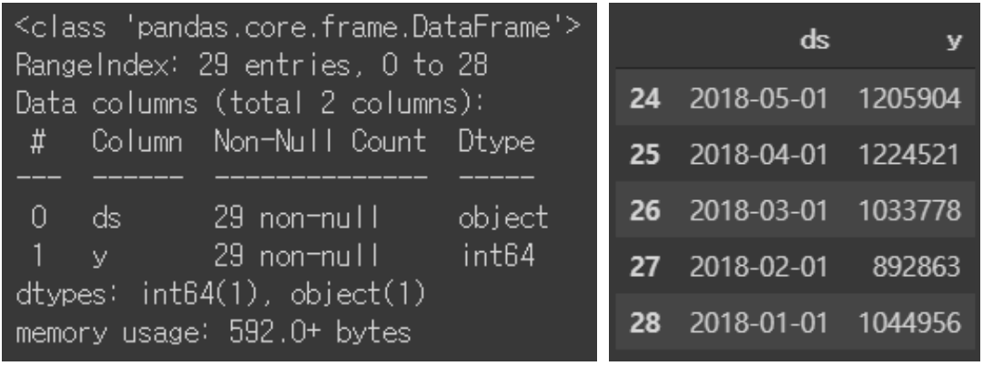 데이터가 어떻게 생겼는지 확인했으니 저는 바로 prophet 모델이 적용해보려고 합니다.