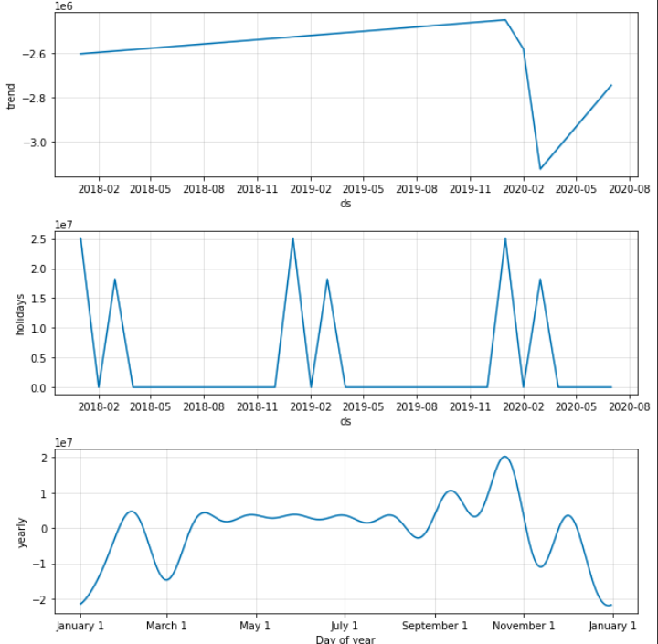 prophet 모델의 각 component를 분절화해서 확인할 수도 있습니다.